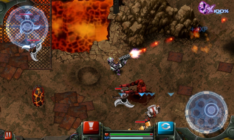 With this dual player game you get a chance to protect all 9 planets having 10 revolutions each and about 50 waves in each revolution. Like a perfect mission you get briefing and learn the requirements of each wave before you enter it . Each time you play a wave you earn experience and Xpodium , you also earn special points on competition of perfect waves (without any health loss) . You can buy a rich variety of guns, armor, power-ups from the gold earned by collecting Xplodium in each wave. The game also allows you to but war bucks directly from Android Market to buy some high-tech weapons before you get into the battle. You can also try out some of their sponsored apps to receive free War bucks to buy expensive guns and armor.