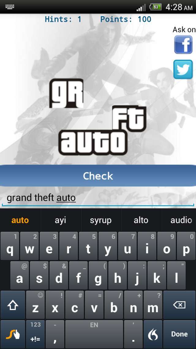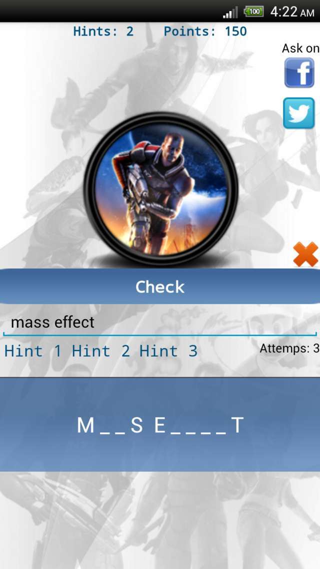Games Logo Quiz comes with a total of 256 unique quizzes in a very refreshing format. The 8 exciting levels are divided into 32 quizzes each and grouped with advancing difficulty in each new level.  As you start the game you will find a variety of logos laid on the screen. You can start spotting the once you know and type in the right answer using the keyboard but precise spellings and spaces matter. The game provides approximately right, correct and wrong notification that can allow you to retype or correct you mistakes without misleading you. For each right answer you score points and an extra hint is added to your available hints counter. These hints come handy when you get stuck on a quiz that seems to be impossible. You can use three hints at the most for one quiz logo which are available in textual description, fill in the blank and game screenshot format making it convenient yet challenging for anyone who is in desperate need of hints. Choosing the right hints can be really important when you have limited hints available in the game, say you know the name of the game but can’t recall it and at the same time you completely forgot the scenes in the game. For everyone else who has lost all their hints and points, social platform like Twitter and Facebook can be the best way to get the answers to your logo quizzes directly from your friends. This being one of the best features I love to use whenever I am stuck on a logo. By placing the logo as a quiz on a social platform I am also indirectly involving my friends and family in the game and make it exciting for everyone trying to answer it while also testing their knowledge in games.  The game stats are a completely different section from where you can directly share and brag your achievement on Facebook as well as Twitter.